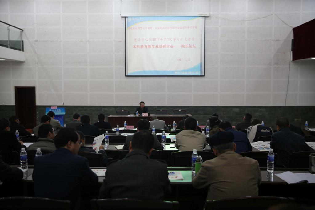1月12日,taptap点点在学术报告厅召开党委中心组2017年第1次学习扩大会暨本科教育教学总结研讨会——院长论坛。会议围绕“为建设国家应用型示范高校,以审核式评估为指导全面提升教育质量”的主题,结合学校实际工作展开研讨。党委书记肖立军作重要讲话,党委副书记、校长黄双华主持会议。