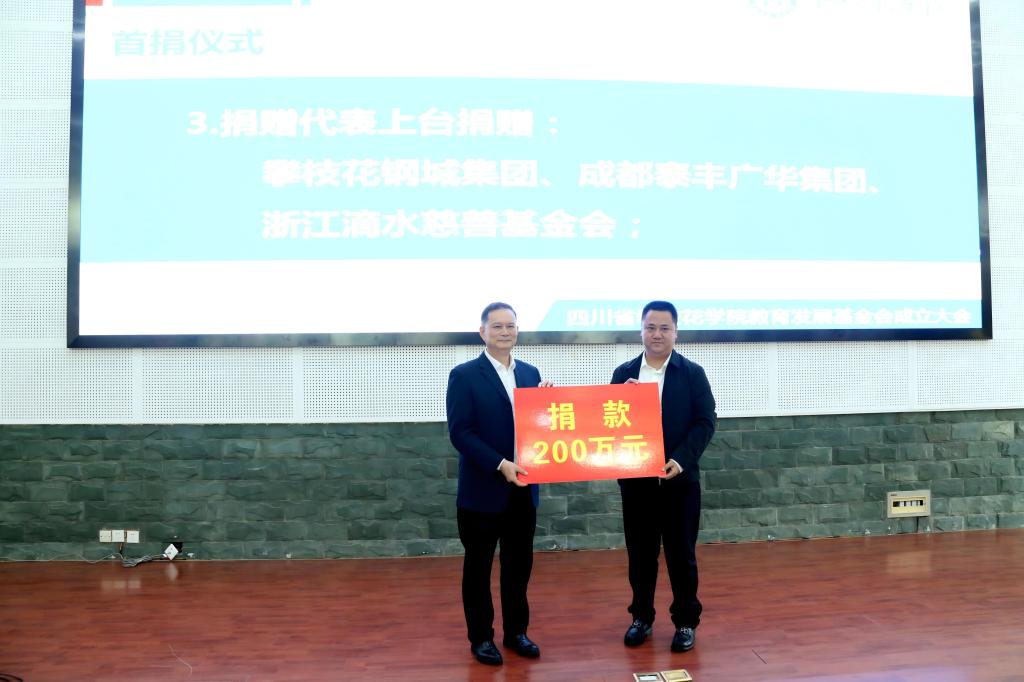 首捐环节,攀枝花钢城集团、成都泰丰广华集团各注入200万元原始基金,浙江滴水慈善基金会及校友王虎、罗欣夫妇等再联合捐赠逾40万元,现场累计到账突破440万元。
