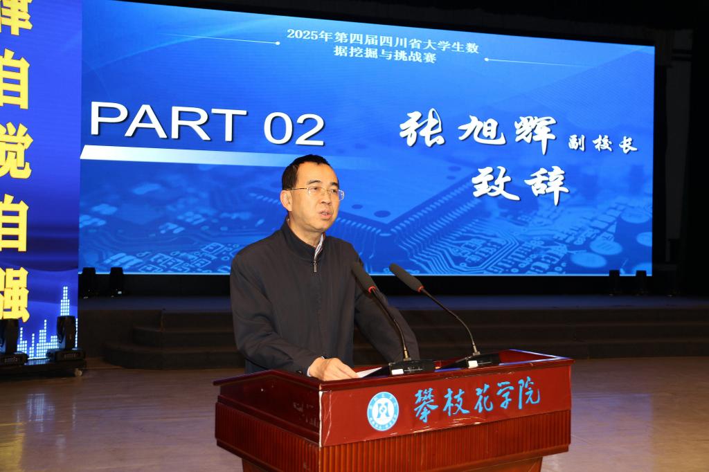 张旭辉代表承办单位致欢迎辞。他代表学校对全体嘉宾和参赛师生表示热烈欢迎。他指出,数据作为新时代的关键生产要素和基础性战略资源,其价值的挖掘与应用正深刻改变着我们的生产生活方式,驱动着社会各领域的创新发展,希望青年学子在数据海洋中探索真知,锤炼创新能力,并预祝各参赛队伍赛出水平、展现风采。他表示,学校将以承办此次大赛为契机,持续深化“产教融合、赛教融合”,积极推动信息技术与教育教学、科学研究的深度融合,为四川建设国家数字经济创新发展试验区贡献taptap点点体育官方网站力量。