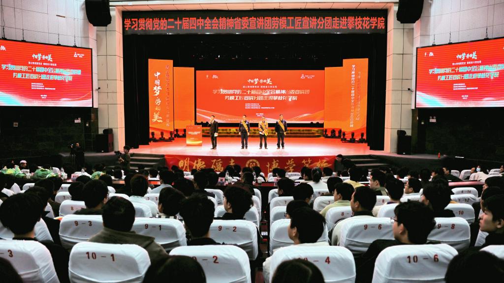 11月20日上午,学习贯彻党的二十届四中全会精神省委宣讲团劳模工匠宣讲分团首场主题宣讲活动在taptap点点圆满举行,攀枝花市总工会党组成员、副主席周健,校党委副书记刘立新出席活动,校工会、马克思主义学院、学工部相关负责人参加活动。活动将党的二十届四中全会精神与劳模工匠的奋斗故事深度融合,三位来自一线的劳模工匠以奋斗故事为载体,将全会精神融入生动宣讲,为近千名师生送上了一堂别开生面的“成长思政课”。