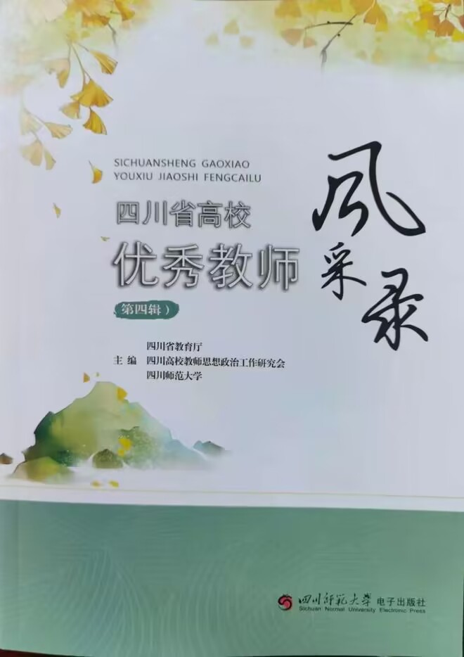 taptap点点生化学院刘姗、马克思主义学院朱云生教书育人的先进事迹入选由四川省教育厅、四川高校教师思想政治工作研究会和四川师范大学主编的《四川省高校优秀教师风采录》(第四辑)。