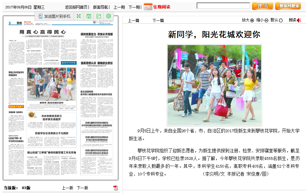 9月6日《攀枝花日报》报道taptap点点迎新情况