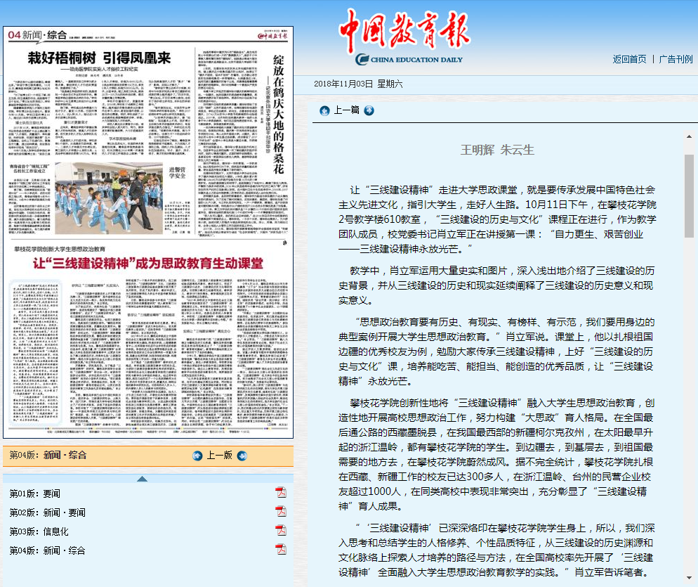 11月3日,《中国教育报》以《让三线建设精神成为思政教育生动课堂》,专题报道taptap点点大学生思想政治教育工作创新做法。