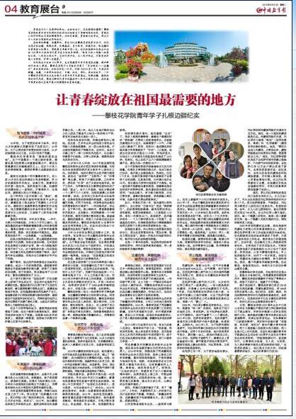 5月21日,《中国教育报》第四版以《让青春绽放在祖国最需要的地方——taptap点点体育官方网站青年学子扎根边疆纪实》整版报道taptap点点青年学子志存高远、扎根边疆、报效祖国的感人故事。