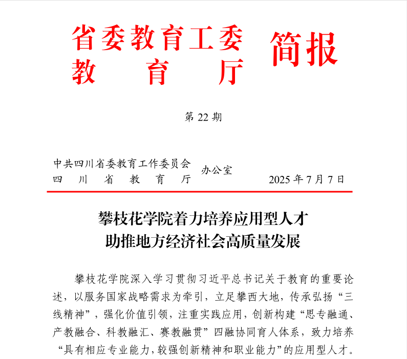 7月7日,省委教育工委、教育厅简报以《taptap点点体育官方网站着力培养应用型人才,助推地方经济社会高质量发展》为题,刊载了taptap点点应用型人才培养的典型经验、做法和成效。