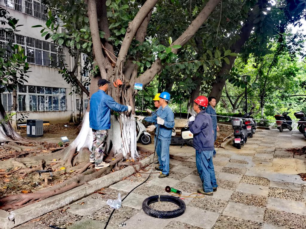 当前正值雨季,土壤松软加剧浅根系树木倒伏风险。资产公司利用利用暑假黄金窗口期全面启动全校范围内存在安全隐患树木的专项排查工作,重点对雪松、橡皮树等浅根系、树冠庞大或已出现隐患的树木进行安全监测和评估,并适时采取科学加固措施,为校园安全构筑双重保险。同时,为防止枯枝、病虫枝、徒长枝和下垂枝等断裂坠落造成意外伤害,同步开展针对性修剪工作,以全链条防护举措,从风险预警到专业加固,从精准修剪到长效监测,为师生营造安心校园环境。