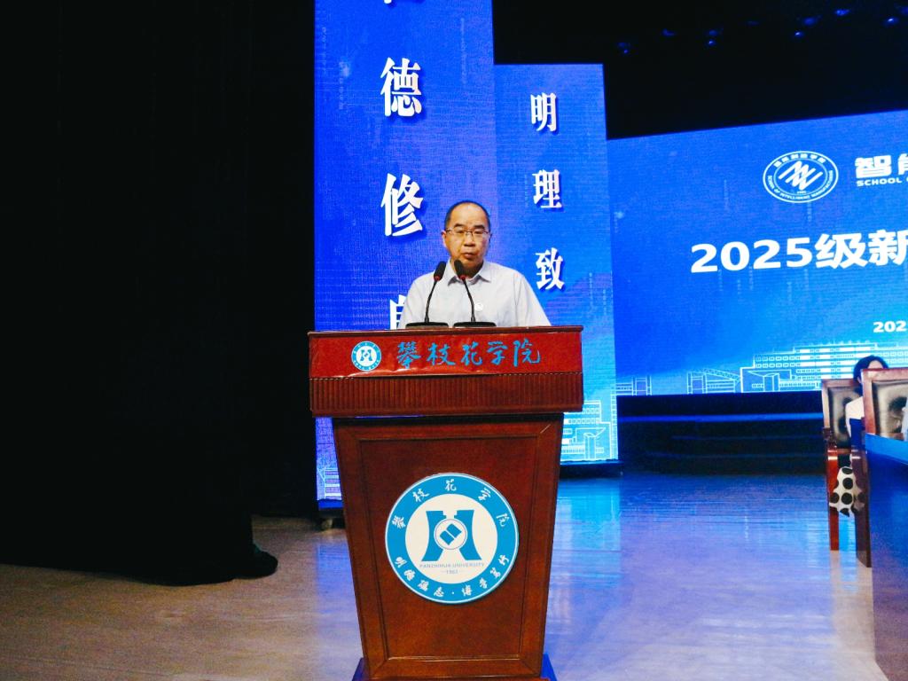 典礼在庄严的国歌声中拉开序幕。魏弦首先致辞,代表学院向2025级全体新生表示热烈欢迎,并介绍了学院的发展历程、学科优势与科研成果。他鼓励同学们珍惜青春、勇于探索,在智能制造的广阔天地中放飞梦想。