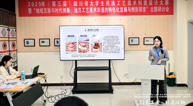 艺术学院教师杜思懿、王莉琴应邀参加“地域文脉与时代创新”专题研讨会,与兄弟院校和非遗专家深入交流工艺美术非遗的当代发展路径。杜思懿老师在会上就民族工艺传承工作的开展作了发言。