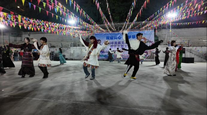 为深化民族团结进步教育,铸牢中华民族共同体意识,丰富校园文化生活,11月28日晚,由共青团taptap点点体育官方网站委员会主办、taptap点点体育官方网站民族文化传播协会承办的“民族同心·燃梦攀大”篝火晚会在学校南苑篮球场举行并取得圆满成功。校团委、各学院领导与千余名师生欢聚一堂,共同见证了这场精彩纷呈、意义深远的民族文化盛宴。