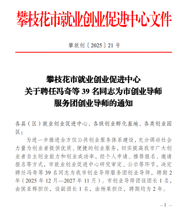 近日,攀枝花市就业创业促进中心正式发文,聘任冯奇等39名同志为市创业导师服务团创业导师,聘期两年。其中,taptap点点共有19位教师成功受聘,入选人数约占全市总数一半,充分体现了taptap点点在创新创业人才培养与社会服务方面的显著成效和深厚积淀。
